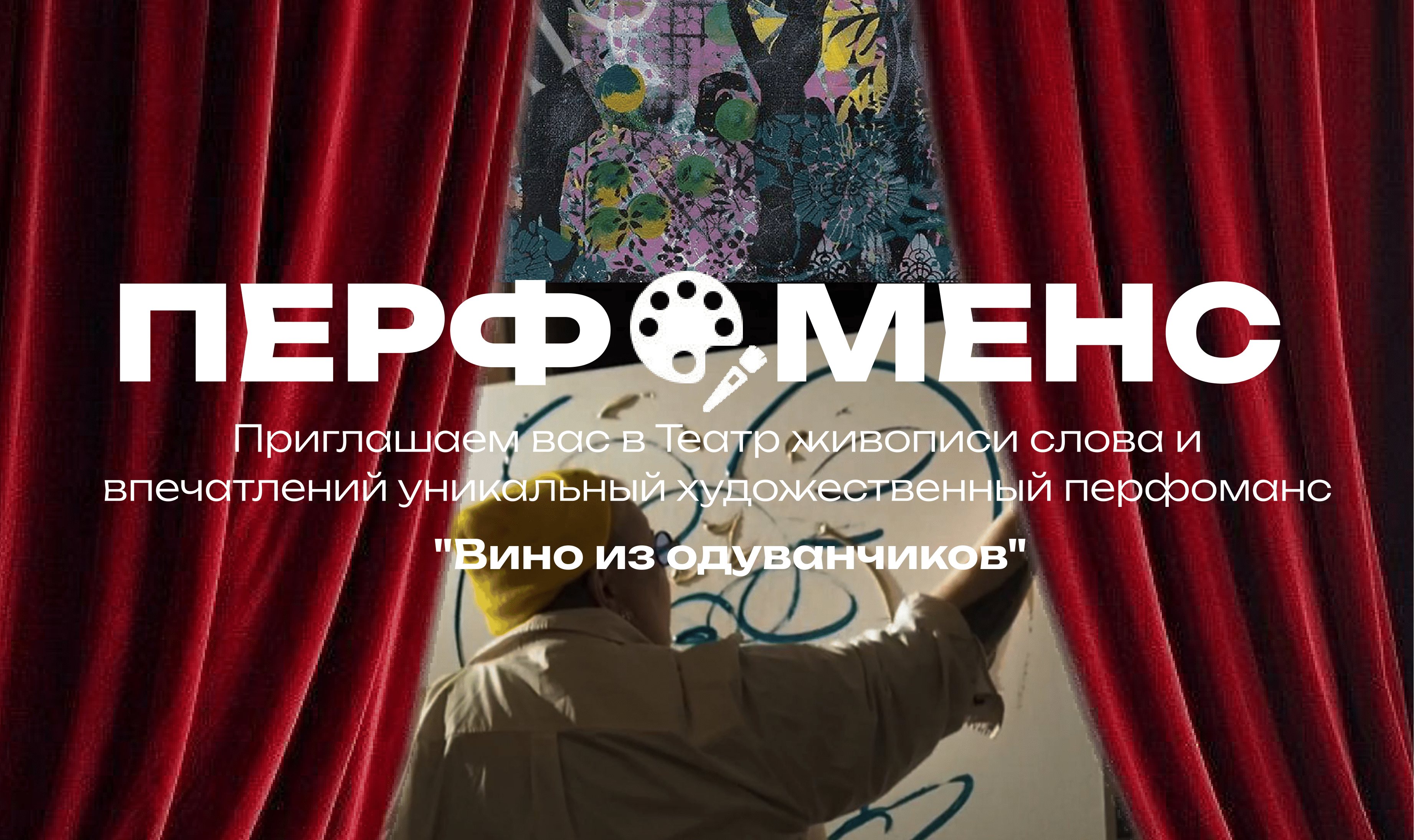 "Вино из одуванчиков" — это метафорическое путешествие в мастерскую художника и поэта. Вдохновленный образами природы и человеческими эмоциями, перфоманс исследует чувства, эмоции. Рей Бредбери обьединил в своём произведении различные истории, как и здесь на холсте, будут появляться разнообразные, проявленные Вами, символизирующие радость и надежду,грусть и интерес, фантастическое и реальное. Вы становитесь центральным элементом, связывающим все аспекты представления.
